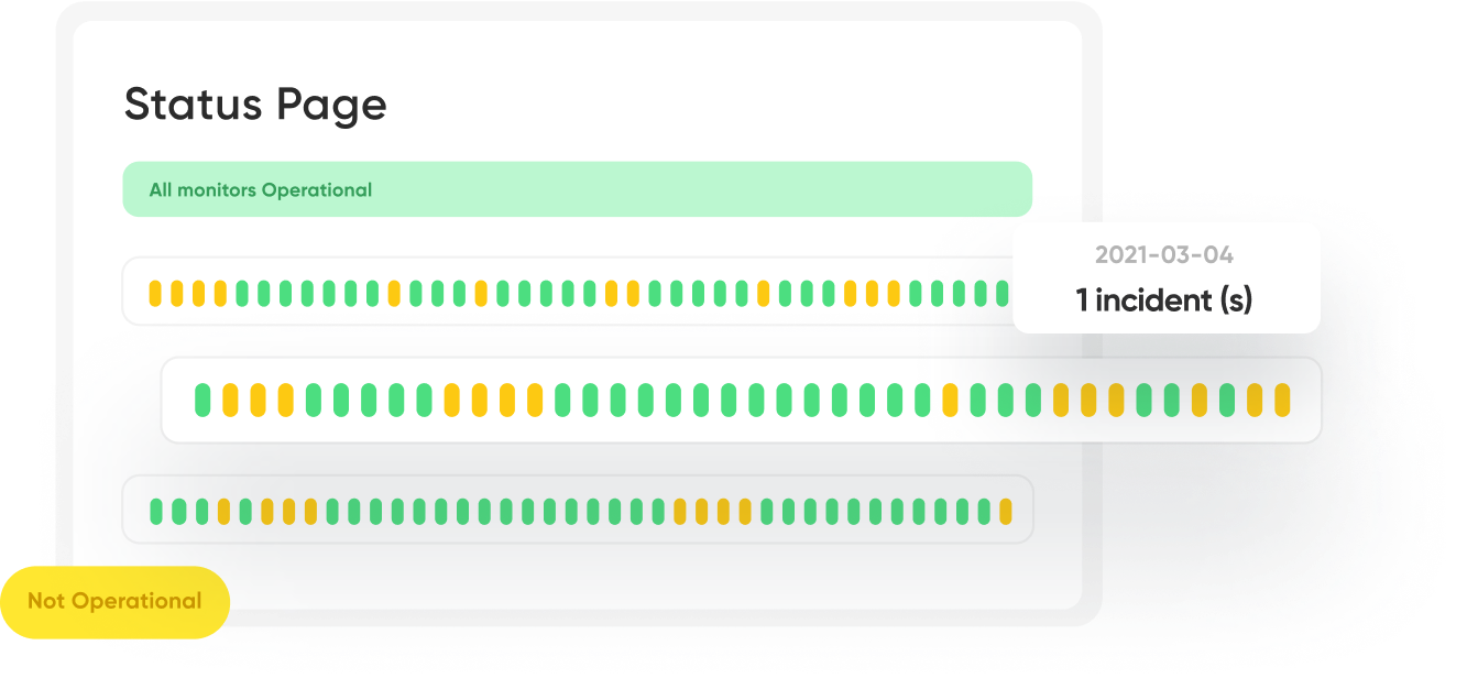 Status pages are a perfect solution for any organization that wants to inform its customers about the availability of its services. Easily create one and add your monitors, that’s it!